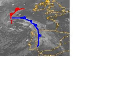 Die Kaltfront eines Tiefs über dem Atlantik liegt heute über Spanien und sorgt dort für Schauer und Gewitter. In den nächsten Tagen wird sich das Tief weiter nach Osten verlagern und spätestens am Donnerstag auch in Deutschland verbreitet Schauer und Gewitter bringen. (Bildquelle: EUMETSAT)
