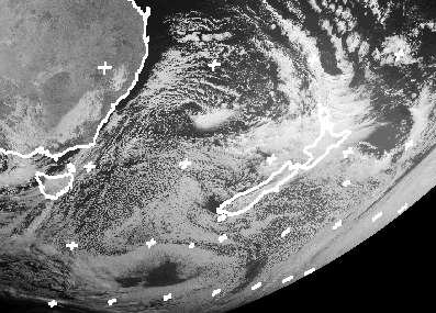 Ein Tief westlich der Nordinsel bringt von Südosten Schauer nach Neuseeland. Sie fallen vor allem auf der Südinsel auch als Schnee, auch in den Niederungen liegen die Höchstwerte nur knapp über 0 Grad.