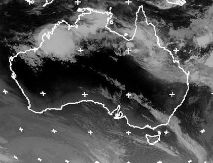 Im Norden Australiens liegt die Bewölkung der, zur tropischen Regenzeit gehörenden, teils kräftigen Gewitter. Weiter nach Süden sorgt Hochdruckeinfluss für geringe Bewölkung. Schwache Tiefausläufer streifen vom Südpolarmeer her den Kontinent, sie bringen aber nur an der Südküste hier und da ein wenig Regen. (Bildquelle: NERC Satellite Receiving Station, Dundee University, Scotland, http://www.sat.dundee.ac.uk/)