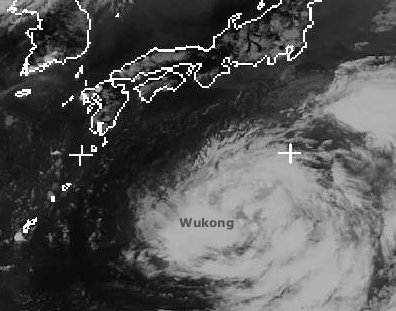 Der Tropische Sturm 'Wukong' liegt derzeit etwa südlich von Japan im Pazifik. Er erreicht in Spitzen Windgeschwindigkeiten von 110 km/h. Bis zum 19.8. soll 'Wukong' bis zur Südspitze Japans gezogen sein und sich noch weiter verstärkt haben. Dann kann er Windgeschwindigkeiten bis zu 160 km/h erreichen.