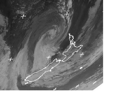 Der ehemalige Wirbelsturm 'Funa' im Südwestpazifik hat sich zum Sturmtief abgeschwächt. Auf dem Satellitenbild von Montag früh befindet sich dieses Sturmtief mit seinem Zentrum westlich von Neuseeland. Seine Ausläufer sorgen dennoch für teils ergiebigen Regen und stürmischen Wind auf beiden Neuseelandinseln. (Bildquelle: NERC Satellite Receiving Station, Dundee University, Scotland, http://www.sat.dundee.ac.uk/)