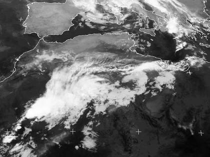 In der Sahara hat sich unter dem Einfluss eines Ausläufers von Tief 'Boris' über dem Golf von Genua ein Tiefdruckgebiet entwickelt, dass Regenfälle und Gewitter bringt.