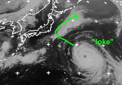 Auf dem Satellitenbild von Sonntag früh ist das Auge des Taifuns 'Ioke' südöstlich von Japan gut zu erkennen. Zurzeit erreicht er eine mittlere Windgeschwindigkeit von 185 km/h und Böen bis 230 km/h und zieht nach Nordwesten auf Japan zu. Berechnungen zufolge soll er jedoch in einiger Entfernung zur japanischen Küste nach Nordosten abdrehen und sich abschwächen. Dennoch muss im Westen und Norden Japans zur Wochenmitte mit ergiebigen Regenmengen gerechnet werden.
