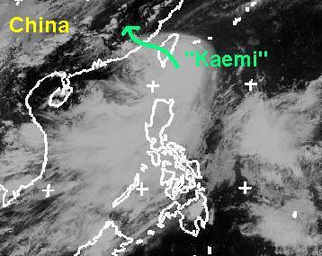 Der Taifun 'Kaemi' befindet sich zur Zeit südöstlich von Taiwan und erreicht mittlere Windgeschwindigkeiten von 140 km/h, in Böen 166 km/h. Berechnungen zufolge soll er Morgen Taiwan überqueren und dann unter Abschwächung weiter auf die Südostküste Chinas zuziehen.