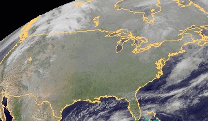 Auf dem heutigen Satellitenbild vom Norden Amerikas zeigt sich der Großteil des Kontinents heiter oder auch wolkenlos. Sehr unbeständig und vielfach regnerisch ist es im äußersten Nordwesten der USA und im Großraum der Pazifikküste Kanadas. Hierbei kommt es neben teils sehr ergiebigen Niederschlägen auch verbreitet zu stürmischem Wind.