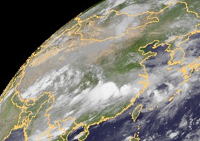 Auf dem Satellitenfoto von China ist über der Nordhälfte der Volksrepublik nur geringe Bewölkung auszumachen, dagegen zeigen sich über dem südlichen China vielfach hochreichende Quellwolken, die hier für teils kräftige Schauer oder Gewitter verantwortlich sind.