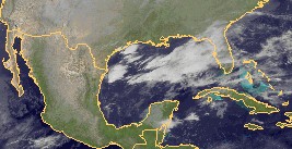 Auf dem heutigen Satellitenbild von Mexiko und dem Süden der USA ist zu erkennen, das die Landmassen, mit Ausnahme von Florida, überwiegend wolkenfrei oder nur gering bewölkt sind. Dagegen bringt ein kräftiges Tief im Golf von Mexiko dort teils ergiebigen Regen und Wind. Dieses Tiefdrucksystem wird sich bis Morgen weiter in Richtung Florida verlagern, so dass es auch dort zu teils kräftigen Schauern oder auch Gewittern kommen kann.