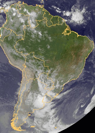 Auf dem heutigen Satellitenbild von Südamerika sind über einem Teil von Ostargentien hochreichende und dichte Wolken zu erkennen, die dort gebietsweise zu kräftigen und ergiebigen Niederschlägen führen. Auch sonst kommt es im Süden des Kontinents immer wieder zu etwas Regen und es weht häufig ein frischer, teils auch starker Wind. Sehr freundlich mit nur seltenen Niederschlägen ist es vor allem in Brasilien. Hierbei ist der Himmel vielfach wolkenlos.
