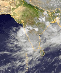 Auf dem heutigen Satellitenfoto von Indien zeigt sich über dem Süden Indiens und hierbei speziell in Teilbereichen der Westküste zum Teil dichte Wolken, die örtlich zu monsunartigen Niederschlägen mit über 50 Litern Regen innerhalb weniger Stunden führen.