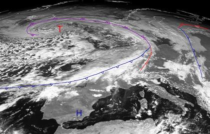 Tief 'Chanel' mit dichten Wolken über Europa