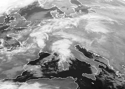 Über Norddeutschland sind noch die letzten Wolkenreste eines Ausläufers von Tief 'Claus', mit Zentrum über Frankreich, zu erkennen. Durch die nördliche Strömung stauen sich diese Wolken am nördlichen Rand der Mittelgebirge. Dort kann es heute noch etwas schneien. Der Ausläufer eines Tiefs über dem Mittelmeer bringt in Norditalien Regen, in den Alpen Schnee.