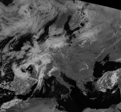 Während sich weite Teile des östlichen Europas wolkenarm zeigen, herrschen im westlichen Europa unter Einfluss von Tief 'Doris' dichte Wolken vor.