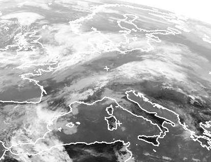 Von den Britischen Inseln bis zur Ostsee erstreckt sich eine Frontalzone, die kühle Luft im Norden von wärmerer im Süden trennt. Hier sind die Wolken meist dicht und es regnet etwas. Über der Nordsee liegt dabei Tief 'Elli', das die Wolken in der Nacht über Deutschland hinweg nach Süden lenkt. (Bildquelle: NERC Satellite Receiving Station, Dundee University, Scotland, http://www.sat.dundee.ac.uk/)