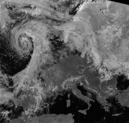 Hochdruchgebiet 'Isidor' sorgt für wolkenarmes Wetter vom Mittelmeer bis nach Deutschland. Über Westeuropa ziehen aber schon die Wolken von Tief 'Felicitas' heran, das in einem schönen Wolkenwirbel über dem Atlantik liegt. Seine Ausläufer bringen am Freitag auch Deutschland mehr Wolken.
