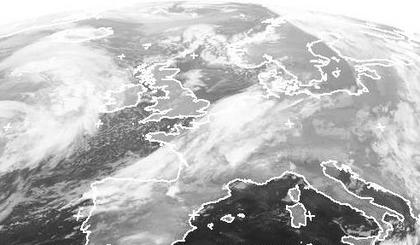 Ein Wolkengebiet erstreckt sich von der Biskaya bis nach Norddeutschland. Hier bringt das kleine Tief 'Johanna' Regen. Die Wolken ziehen weiter nach Osten, dahinter folgt dann ein aufgelockertes Gebiet. Vor Irland erkennt man aber schon die Bewölkung des neuen Sturmtiefs 'Kira', die morgen nach Deutschland zieht.