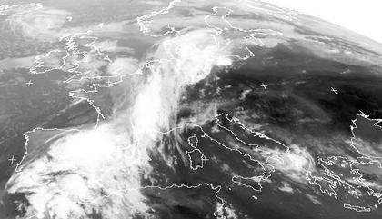 Auf dem Satellitenbild von Montag früh erkennt man ein breites Wolkenband das sich von Südfrankreich über Deutschland bis nach Südschweden erstreckt. Dieses Wolkenband gehört zu Tief 'Michael' mit seinem Zentrum über Ostdeutschland. Seine Ausläufer bringen heute zum Teil kräftigen Regen vor allem im Norden Deutschlands. Weiter östlich sorgt Hoch 'Rolena' für einen fast wolkenfreien Himmel.