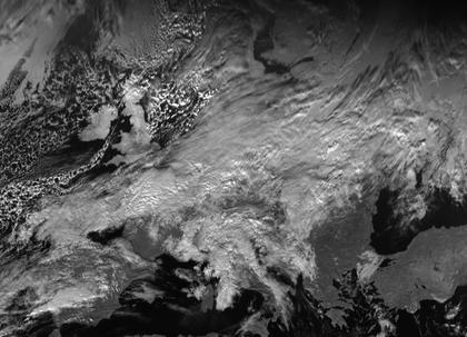 Tief 'Monika' mit Zentrum über Frankreich sorgt für dichte Wolken und Regen, Schneeregen oder Schnee in West- und Mitteleuropa. Freundlicher ist es unter Hochdruckeinfluss im Südosten Europas.