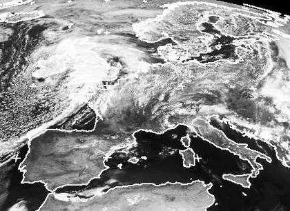 Auf dem Satellitenbild vom Samstagmittag ist über Deutschland nur lockere Bewölkung zu erkennen. Überwiegend handelt es sich um Cumulusbewölkung, die sich in der kühlen Luft nach der Erwärmung des Bodens am Vormittag gebildet hat. Schauer bringen die Wolken kaum. Über den Britischen Inseln liegt das Tief 'Otto' mit seinen Wolken, das aber nur sehr langsam weiter nach Osten zieht, es kann aber dennoch schon am Sonntag mehr Wolken und vor allem in der Nacht zum Montag auch Schauer und Gewitter bringen. (Bildquelle: NERC Satellite Receiving Station, Dundee University, Scotland, http://www.sat.dundee.ac.uk/)