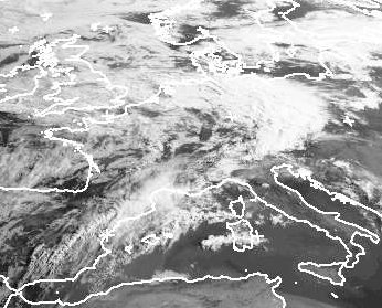Tief 'Randy' über Norddeutschland sorgt am Morgen für ein dichtes Wolkenfeld über dem Norden und Osten Deutschlands. Es zieht allmählich nach Nordosten weiter. Von Südwesten folgt aufgelockerte Bewölkung. Es ist wechselhaft mit Schauern oder auch Gewittern. (Bildquelle: NERC Satellite Receiving Station, Dundee University, Scotland, http://www.sat.dundee.ac.uk/)