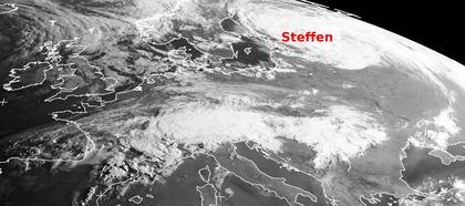 Auf dem Satellitenbild von Mittwoch früh liegt dichte Bewölkung über dem Baltikum. Sie gehört zu Tief 'Steffen'. Die zugehörigen Ausläufer zeigen sich in einem dünnen Wolkenband über Russland und der Ukraine und in seiner westlichen Verlängerung mit stärkerer Bewölkung von Rumänien über Ungarn und Österreich bis in den Osten von Frankreich. Hier kommt es insbesondere im Stau der Alpen zu teils kräftigen Regenfällen oder Gewittern. Ansonsten herrscht in Mitteleuropa ein Mix aus Sonne und Wolken, bei dem es weitgehend trocken ist. (Bildquelle: NERC Satellite Receiving Station, Dundee University, Scotland, http://www.sat.dundee.ac.uk/)