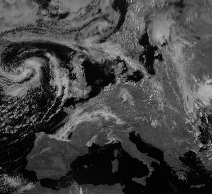 Westlich von Irland liegt das Zentrum des Tiefdruckwirbels 'Tommy'. Das Wolkenband seiner Okklusion erstreckt sich nördlich von Schottland, über Südschweden und bis nach Polen. Auf ihrer Rückseite ist es in Deutschland meist nur locker bewölkt. An der Grenze zwischen sehr warmer Luft im Südosten und nur mäßig warmer Luft im Nordwesten liegt über Nord- und Westfrankreich sowie der Biskaya ein weiteres Wolkenband. Durch das Kantabrische Gebirge endet es abrupt und reicht nicht weiter in das warme und trockene Landesinnere Spaniens hinein.