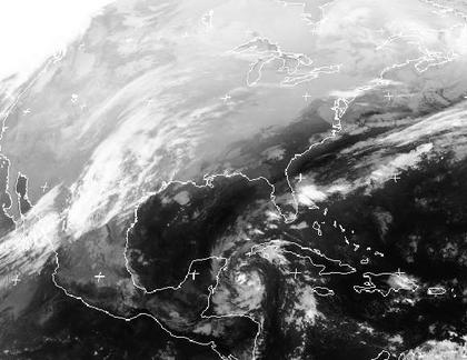 Ein Tiefdruckgebiet baut sich im Süden der USA auf, auf dem Satellitenbild vom Freitag Mittag sind seine Wolken südöstlich von den Rocky-Mountains zu erkennen. Am Wochenende zieht es unter Verstärkung von Texas bis zu den Appalachen und bringt im gesamten Südosten der USA ergiebige, zum Teil unwetterartige Regenfälle. (Bildquelle: NERC Satellite Receiving Station, Dundee University, Scotland, http://www.sat.dundee.ac.uk/)