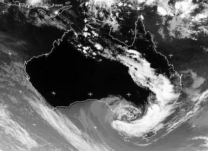 Die Ausläufer eines Tiefs über der Großen Australischen Bucht erstrecken sich von der Südostspitze des Kontinents über die östlichen Landesteile bis in den Norden Australiens. Sie bringen heute vor allem im Osten zum Teil ergiebigen Regen, im Norden sind einzelne Schauer- oder Gewitterzellen zu erkennen. Sonst bleibt es auf dem Kontinent meist freundlich und recht warm.