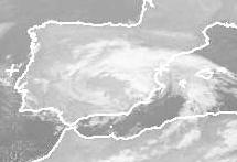 Auf dem Satellitenbild von Samstag früh sind die Wolken eines Tiefs über Spanien gut zu erkennen. Dieses Tief sorgt heute und in den nächsten Tagen auf der iberischen Halbinsel für teils kräftige Schauer und Gewitter. (Bildquelle: NERC Satellite Receiving Station, Dundee University, Scotland, http://www.sat.dundee.ac.uk/)