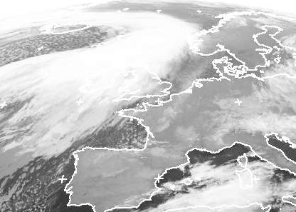 Über Deutschland hat sich heute Zwischenhocheinfluss eingestellt. Gebietsweise findet man kaum Wolken. Über dem Süden halten sich aber noch dichtere Wolken. Sie können sich nur langsam auflösen. Unterdessen nähert sich von Nordwesten ein ausgedehntes Wolkengebiet. Es gehört zu Tief 'Xynthia' mit Zentrum bei Island. Schon in der Nacht erreichen die Regenwolken den Nordwesten Deutschlands, morgen dehnen sie sich weiter über das Land aus. Dabei kommt auch wieder starker, teils stürmischer Wind auf. (Bildquelle: NERC Satellite Receiving Station, Dundee University, Scotland, http://www.sat.dundee.ac.uk/)