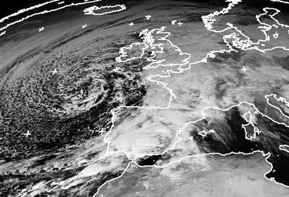 Auf dem Ostatlantik, südwestlich von Irland, liegt das Zentrum von Tief 'Zebedäus'. Dieser Bereich des Tiefs ist mit kühler Luft aufgefüllt, in der sich eine lockere Schauerbewölkung gebildet hat, die kreisförmig um das Zentrum angeordnet ist. Die dichten Wolken über Westeuropa liegen im Frontbereich zu wärmerer Luft in der Höhe über Deutschland. Nur in Bodennähe ist es hier kühler. Dabei liegt teils Hochnebel, teils etwas Bewölkung des Tiefs über dem Land, teils gibt es auch Auflockerungen. (Bildquelle: NERC Satellite Receiving Station, Dundee University, Scotland, http://www.sat.dundee.ac.uk/)
