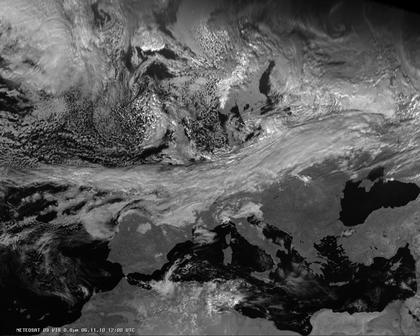 Auf dem Satellitenfoto ist zu erkennen, dass der nördliche Teil von Europa überwiegend von Wolken dominiert wird. Hier herrscht verbreitet Tiefdruckeinfluss mit sehr wechselhaftem und meist kühlen Wetter vor. Vor allem entlang einer Kaltfront von Frankreich, über Deutschland bis nach Polen und Westrussland fällt verbreitet Regen. Weiter nördlich dieser Kaltfront herrscht meist sehr kühles Schauerwetter. Weiter nach Süden ist es dagegen vielfach wolkenlos oder nur gering bewölkt und trocken.