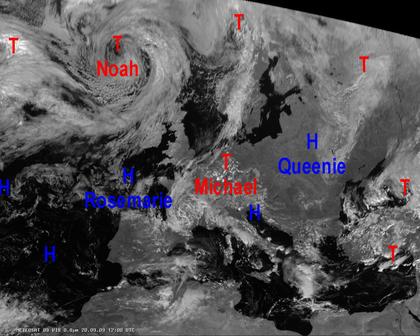 Auf dem Satellitenfoto von heute Nachmittag sind vor allem über Frankreich, aber ebenfalls über Italien und über der Türkei meist viele dichte Wolken auszumachen. Hierbei kommt es zu Schauern oder Gewittern, dazwischen kann aber auch zum Teil die Sonne scheinen. Auch sonst ist es am Mittelmeer häufig bewölkt und gebietsweise kommt es dort zu Schauern. Von Skandinavien bis Nordwestrussland ist es ebenfalls häufig wolkig bei gelegentlich etwas Regen. Sehr freundlich und trocken ist es in weiten Teilen Osteuropas und auch weitgehend auf der Iberischen Halbinsel.