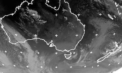 Über weiten Teilen Australiens ist es kaum bewölkt und meist herrscht Hochdruckeinfluss. Einen kleinen Tiefdruckwirbel findet man über Tasmanien, er bringt einige Schauer, einen ähnlichen Wirbel kann man auch westlich der Nordinsel Neuseelands entdecken. Stärker wetterwirksam ist dagegen ein Ausläufer eines Tiefs über dem Südpolarmeer, der sich über Westaustralien erstreckt. Er bringt Regen und etwas Sturm, teils auch ins Landesinnere, vor allem aber an die Südküste. (Bildquelle: NERC Satellite Receiving Station, Dundee University, Scotland, http://www.sat.dundee.ac.uk/)