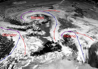 Über den Britischen Inseln liegen die Wolken des Tiefs 'Nicolas', die in den vergangenen Tagen für teils ungewöhnliche Neuschneemengen auf der Insel sorgten. Gleichzeitig bringen im Süden die Wolken des Tiefs 'Menno' ergiebige Niederschläge, teils in Form von Schnee, teils als Regen. Auf der Iberischen Halbinsel zeigen sich auch schon die Wolken des Tiefs 'Olander'. Alle drei Tiefs ziehen nach Osten weiter und sorgen weiterhin für wechselhaftes Wetter in fast ganz Europa. (Bildquelle: NERC Satellite Receiving Station, Dundee University, Scotland, http://www.sat.dundee.ac.uk/)