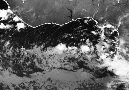 An der Westafrikanischen Küste zwischen Liberia und Kamerun bilden sich kaum noch Schauer oder Gewitter, da hier jetzt die Trockenzeit beginnt.