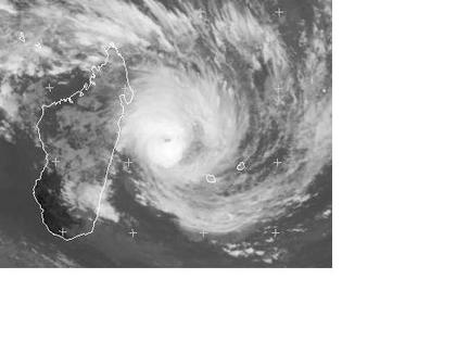 Auf dem Satellitenbild von Freitag früh ist der Tropensturm 'Gael' östlich von Madagaskar gut zu erkennen. Zurzeit erreicht er mittlere Windgeschwindigkeiten von 149, in Böen 185 km/h. Berechnungen zufolge soll er sich nicht weiter verstärken und Richtung Süden abdrehen. Sein Endziel ist allerdings noch unklar. (c) DWD/Eumetsat