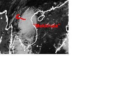 Auf dem Satellitenbild von Dienstag früh liegt der Tropensturm 'Mekkhala' über dem Norden von Vietnam und Laos und sorgt dort für ergiebige Niederschläge. Zurzeit erreicht er mittlere Windgeschwindigkeiten von 102, in Böen 130 km/h. Berechnungen zufolge soll er weiter Richtung Westen ziehen und sich dabei abschwächen. Sein Endziel ist allerdings noch unklar. (Bildquelle: NERC Satellite Receiving Station, Dundee University, Scotland, http://www.sat.dundee.ac.uk/)