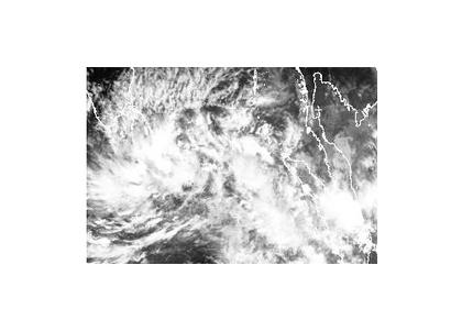 Das Satellitenbild zeigt zahlreiche Tropische Gewitter im Indischen Ozean, zwischen Indien (oben links) und Vietnam (ober rechts). Die sehr helle Farbe der Wolken deutet auf sehr hoch reichende Wolkentürme hin.