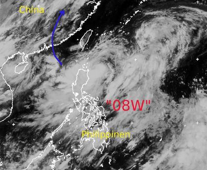 Über den nördlichen Philippinen liegt am Dienstag Mittag die neue tropische Störung '08W'. Nachdem bereits vor drei Wochen der Taifun 'Fengschen' hier für Überschwemmungen gesorgt hat, kommt es erneut zu starken und heftigen Regenfällen. Der Wind selber ist mit 55 km/h (in Böen bis 75 km/h) gar nicht das große Problem. '08W' wandert nun in nördliche Richtung auf China zu und wird sich noch etwas verstärken. (Bildquelle: Copyrigt EUMETSAT, NERC Satellite Receiving Station, University of Dundee)