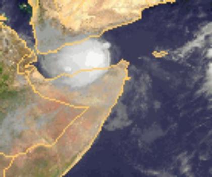 Am Horn von Afrika hat sich ein kleiner tropischer Sturm entwickelt, der in das Rote Meer zieht. Im Bereich von 'Bandu' werden z.Z. Windgeschwindigkeiten von 65 km/h erreicht.