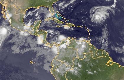 Über dem westlichen Atlantik befindet sich der tropische Sturm 'Danielle'. In seinem Bereich werden Windgeschwindigkeiten von 160 km/h erreicht. Über Mittelamerika und dem Norden Südamerikas haben sich kräftige Schauer und Gewitter entwickelt
