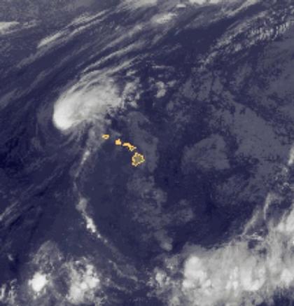 Auf dem Satellitenbild ist der tropische Sturm 'Neki' erkennbar, der Hawaii passiert hat und weiter in den Nordostpazifik zieht. In seinem Bereich werden noch immer Windgeschwindigkeiten von 120 km/h erreicht.