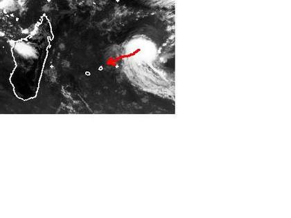 Auf dem Satellitenbild von Sonntag früh ist ein tropischer Sturm nordöstlich von Mauritius gut zu erkennen. Er erreicht zurzeit mittlere Windgeschwindigkeiten von 65, in Böen 84 km/h und zieht Richtung Südosten. Derzeit liegen die Inseln Mauritius und Reunion in seiner Zugrichtung, sein Endziel ist aber noch unklar. (Bildquelle: NERC Satellite Receiving Station, Dundee University, Scotland, http://www.sat.dundee.ac.uk/)