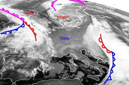 Tiefdruckgebiete über dem Atlantik, Skandinavien und dem Balkan sorgen für meist wechselhaftes Wetter mit Schnee, im Süden auch Regen. Dazwischen sorgt leichter Zwischenhocheinfluss über Deutschland zum Teil für ruhiges, teils aber auch trübes Wetter.