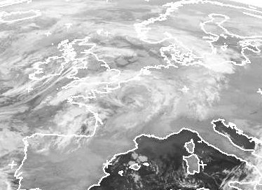 Das Zentrum von Tief 'Isaac' liegt im Nordwesten der Britischen Inseln. Man erkennt ein Wolkenband, das sich bis nach Südschweden und Nordpolen erstreckt. Das ist dei Warmfrontbewölkung, die in der Nacht in Deutschland Regen brachte. Die Kaltfront ist mit ihren Wolken nicht so deutlich zu erkennen. Sie liegt bei den Wolken an der englischen Südküste. In der Nacht zieht sie nach Deutschland und bringt erneut teils kräftigen Regen. Zuvor liegt Deutschland noch unter den vielen Wolken des Warmsektors.