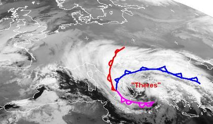 Die dichten Wolken über Italien und dem Balkan gehören zu Tief 'Theres', dass heute vor allem in Italien und Griechenland für kräftigen Regen sorgt. Die Wolken seiner Warmfront erstrecken sich bis in den Süden Deutschlands, sie bringen aber kaum Niederschlag mit sich. Sonst ist es vor allem im Norden Europas unter Hochdruckeinfluss teils aufgeheitert, teils auch trüb.