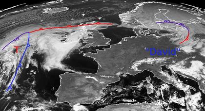 Das kräftige Hoch 'David' mit Zentrum über Polen hält auch Mittwoch alle Wolken von Mitteleuropa fern. Von Spanien bis nach Polen sind kaum Wolken vorhanden, durch recht trockene Luftmassen hat sich auch kaum Nebel oder Hochnebel gebildet. Westlich der Britischen Inseln liegt ein Tief mit seinen Wolken, es zieht in den nächsten Tagen zum Nordmeer und erreicht Mitteleuropa nicht. In Skandinavien und über dem Baltikum sorgt ein altes Tief ebenfalls für starke Bewölkung, hier nimmt in den nächsten Tagen aber auch der Hochdruckeinfluss zu. (Bildquelle: NERC Satellite Receiving Station, Dundee University, Scotland, http://www.sat.dundee.ac.uk/)