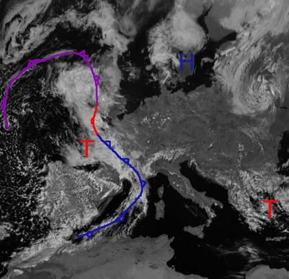 Während sich über weiten Teilen des europäischen Festlandes dank des Einflusses von Skandinavienhoch 'Quinta' nur wenige Wolken befinden, sorgt das Tief 'Qurin' vor den Britischen Inseln für starke Bewölkung und Schauer oder Gewitter von Schottland bis nach Südwestfrankreich und bis zur Iberischen Halbinsel. Auch über Griechenland zeigt sich häufig Schauerbewölkung. Tief 'Quirin' kommt bis morgen etwas nach Osten voran und bringt dann auch in Deutschland Schauer und Gewitter.