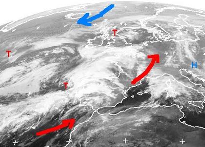 Die Wärmepumpe für Mitteleuropa läuft weiter auf hohen Touren. Verantwortlich dafür ist ein ausgedehntes Tiefdrucksystem über dem Atlantik und den Britischen Inseln. Auf seiner Ostseite wird warme Luft aus der Mittelmeerregion und den Tropen bis weit nach Norden gelenkt. Polare Kaltluft kann sich erst weit im Westen auf dem Atlantik durchsetzen und strömt über Island hinweg in Richtung Neufundland. Sie erreicht Mitteleuropa auch in der ersten Hälfte der neuen Woche nicht. Nur die etwas kühlere Luftmasse zwischen den Tiefdruckgebieten kann zur Wochenmitte für etwas kühler-herbstliche Stimmung sorgen.