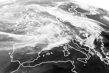 Tief 'Winfried' liegt mit seinem Kern nordwestlich der Britischen Inseln. Nachdem das Wolkenband seiner Okklusion nach Nordosten abgezogen ist und nun über Südskandinavien und Litauen liegt, folgt mit kurzem Abstand von Westen ein neues ausgedehntes und meist dichtes Wolkengebiet. Auflockerungen sind nur wenige zu entdecken. (Bildquelle: NERC Satellite Receiving Station, Dundee University, Scotland, http://www.sat.dundee.ac.uk/)